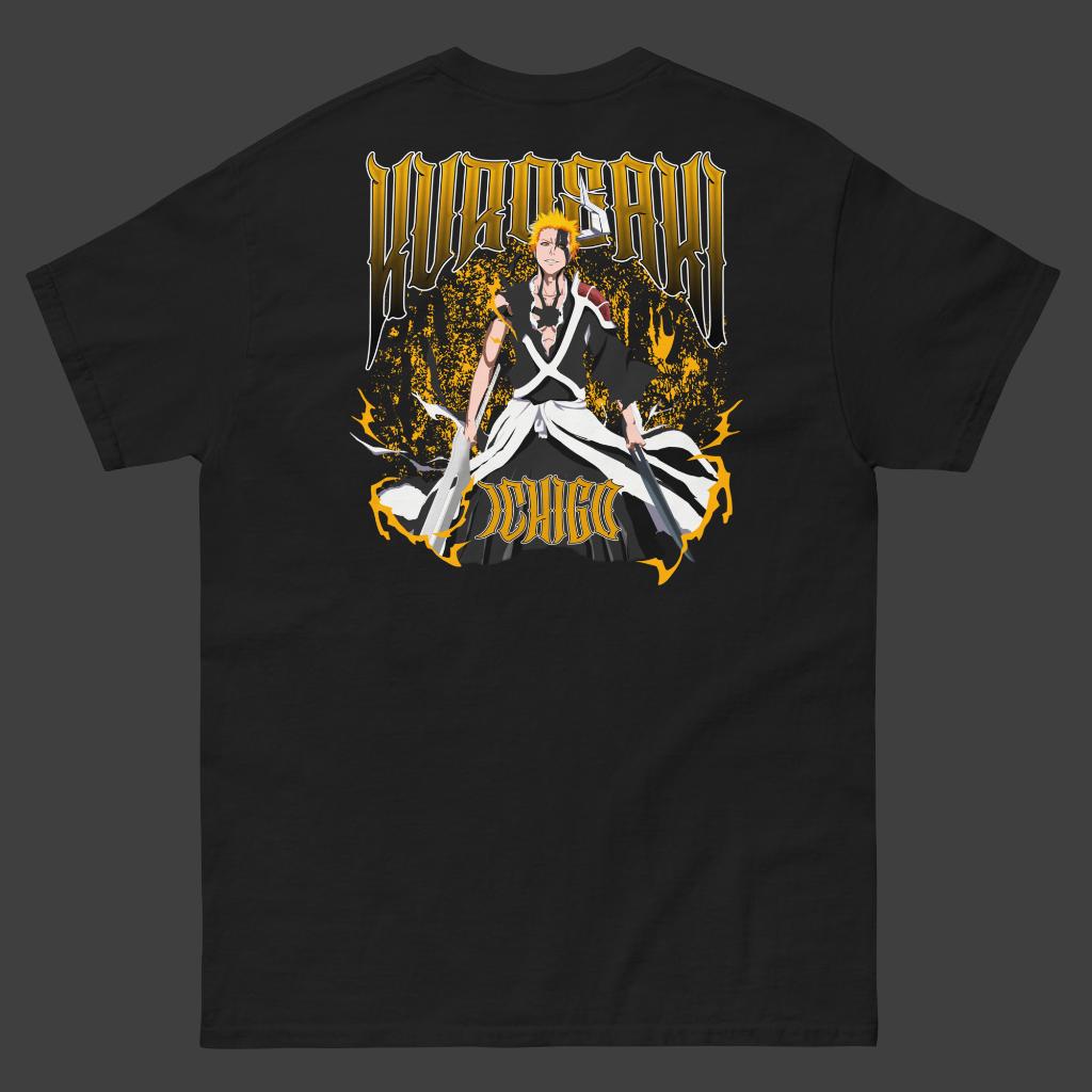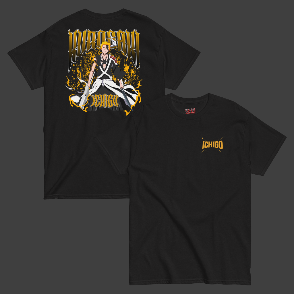 This bold tee features Ichigo Kurosaki in his true Bankai form, wielding his dual blades with unmatched power and intensity. A dynamic design that captures the essence of Bleach’s most iconic transformation, perfect for fans who want to carry Ichigo’s determination and strength in style.